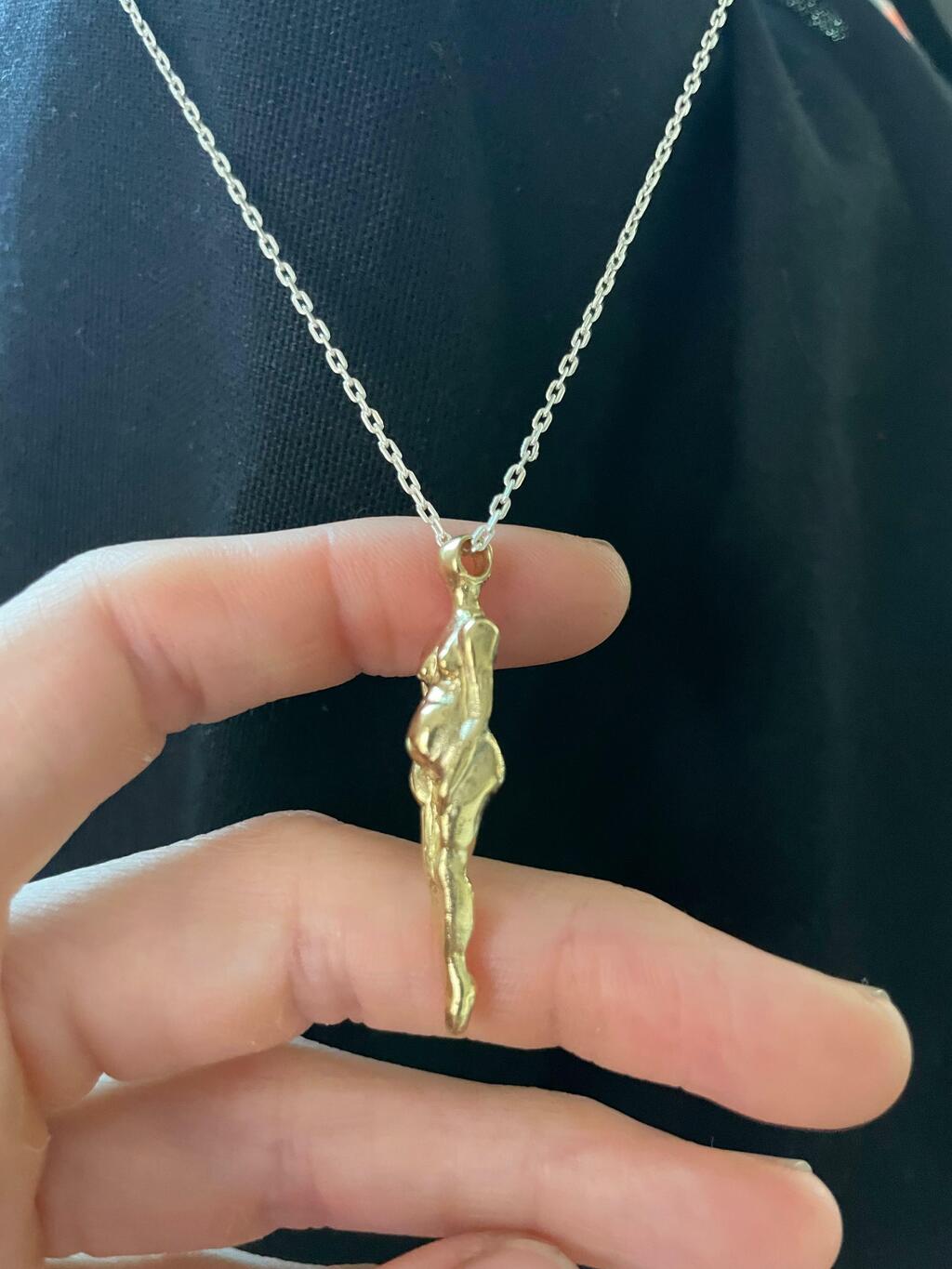 Dije elaborado en cera y fundido en bronce. Se puede realizar en plata (consultar precio). Viene con cadena y broche en Plata 925.
