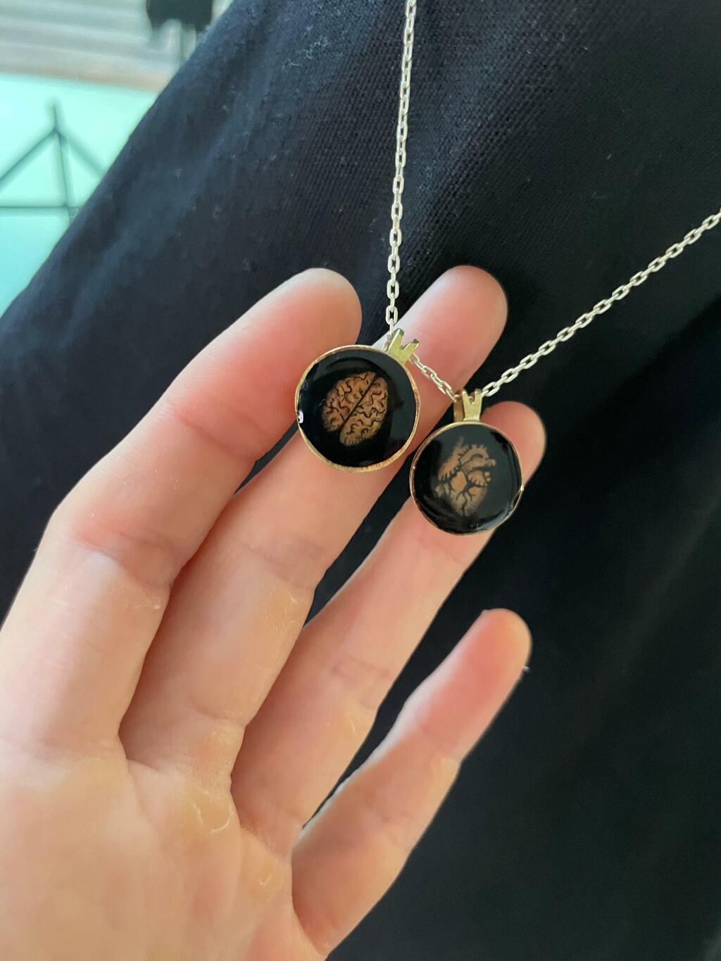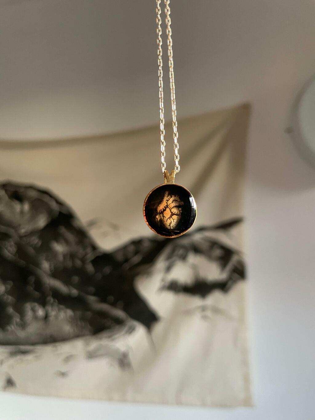 Dije elaborado 100% a mano en bronce y resina. El dibujo miniatura está realizado a mano.